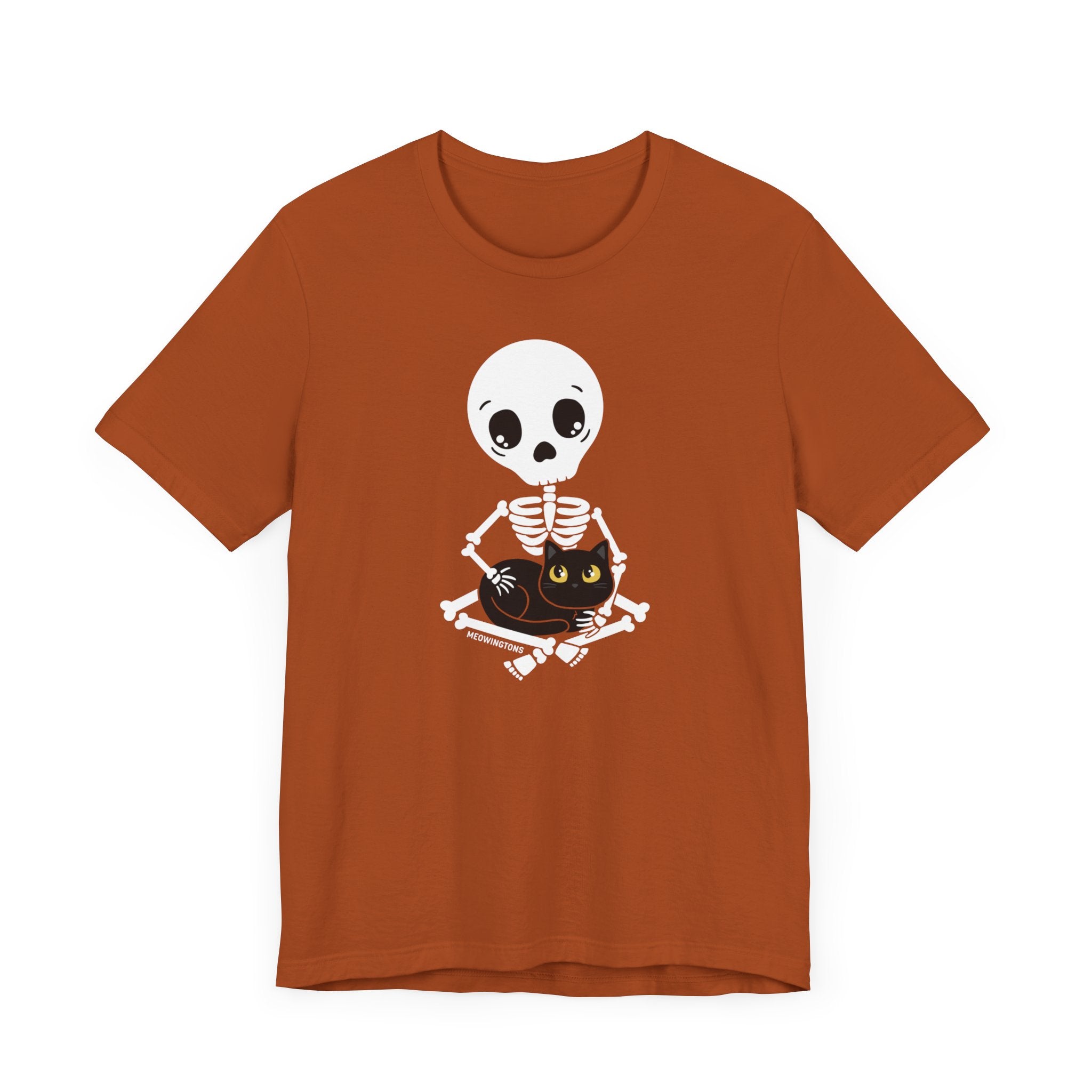 Creep it cute this Halloween with the all-new Friends Forever Skeleton Cat Tee! Each limited-edition Halloween jersey t-shirt features Skullivan the skeleton snuggling up to Smokette, their black cat and best friend. These forever friends will keep you company on all your autumnal adventures – and beyond – whether you’re crunching fall leaves underfoot or celebrating your love for all things Halloween. Pair this creepy-cute Halloween tee with your favorite cat scarf for an unbeatably adorable look this fall!