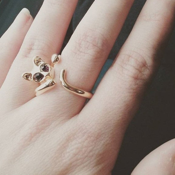 Wide-eyed and ready for snuggles! This cute little kitten just wants your love – forever and always. This adorable, wrap-around cat ring is comfortable to wear and so easy to adjust. You just need to very slowly stretch the tail a little for a perfect fit. Check out those bright, inquisitive eyes – sparkling with wonder and excitement. And the perfect little ears, delicately crafted in 18K real gold plate.